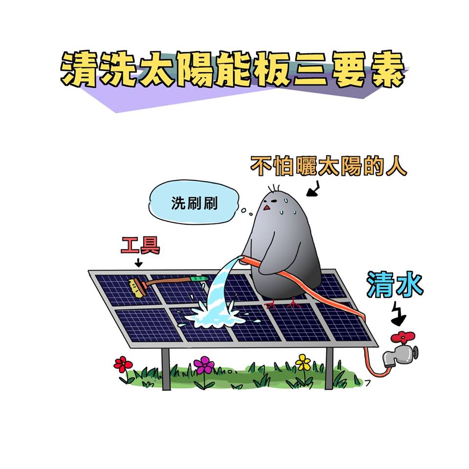 【背景說明】裝設在室外的太陽光電板,常沾黏到落塵、鳥糞等各式髒污,這些髒污容易影響太陽光電系統(tǒng)的發(fā)電效率,因此需要定期清潔太陽光電板。